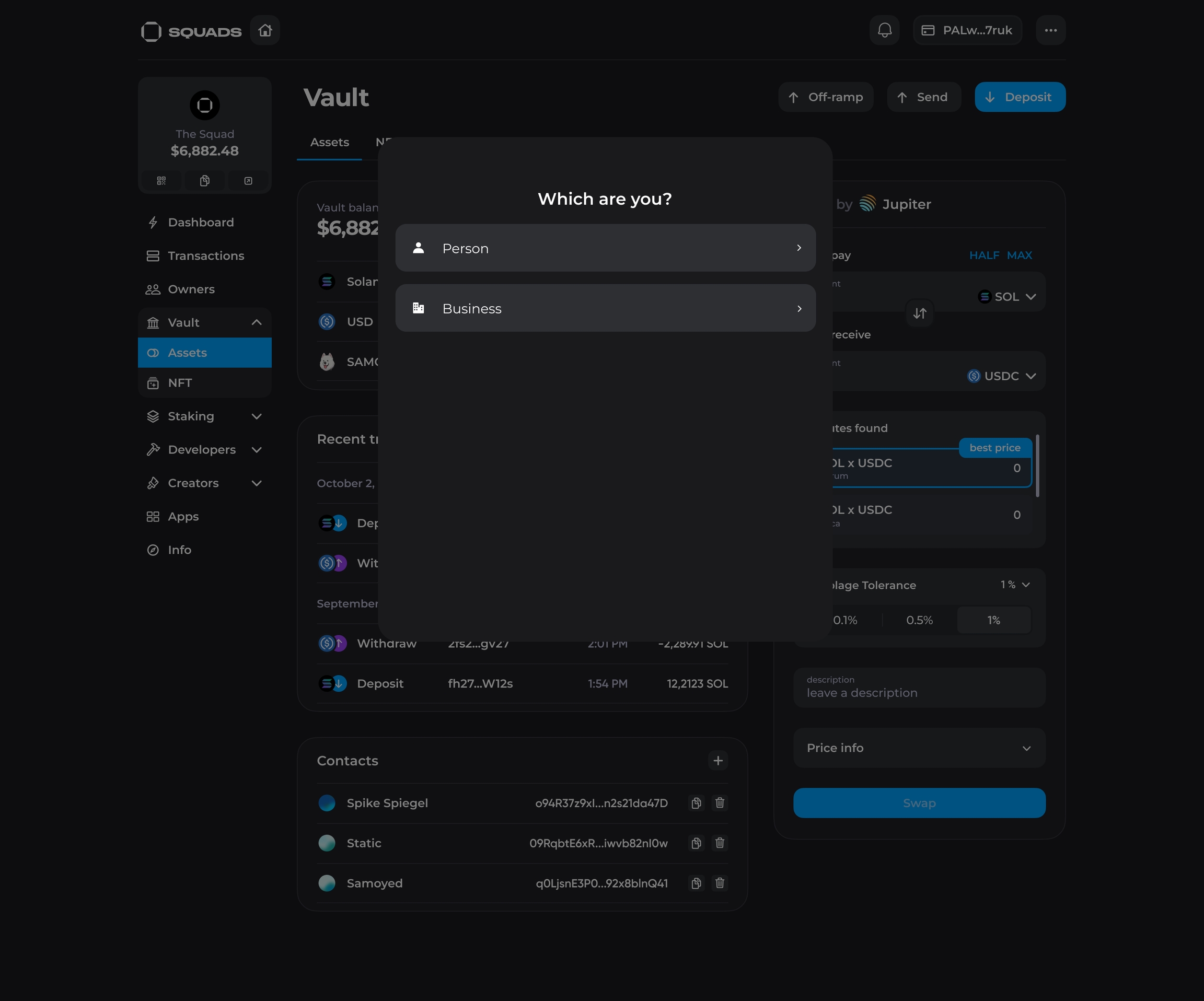 - Navigate to the "Vault" tab and click on the "Off-ramp" button.