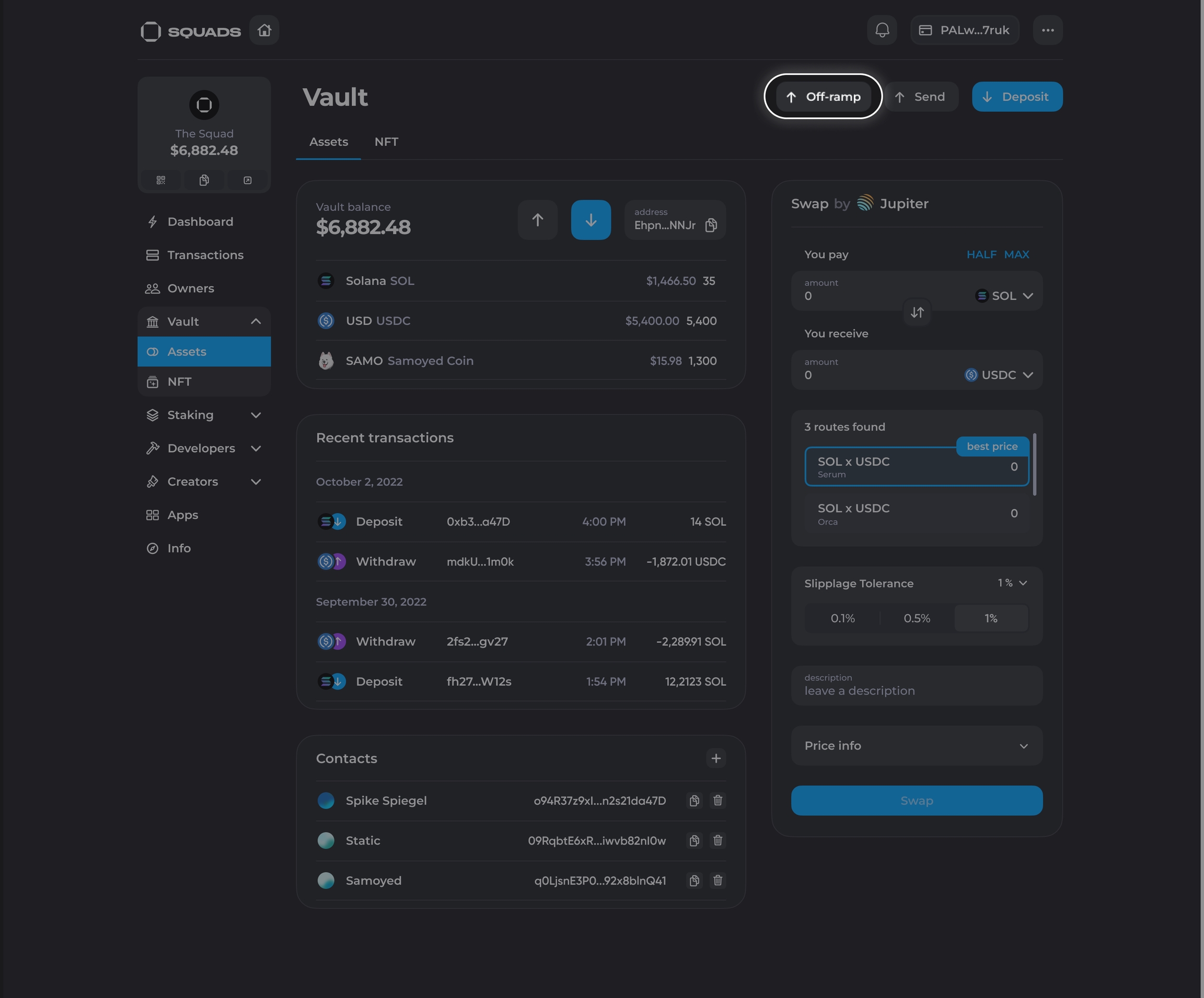 - Navigate to the vault tab and click on the "Off-ramp" button.
