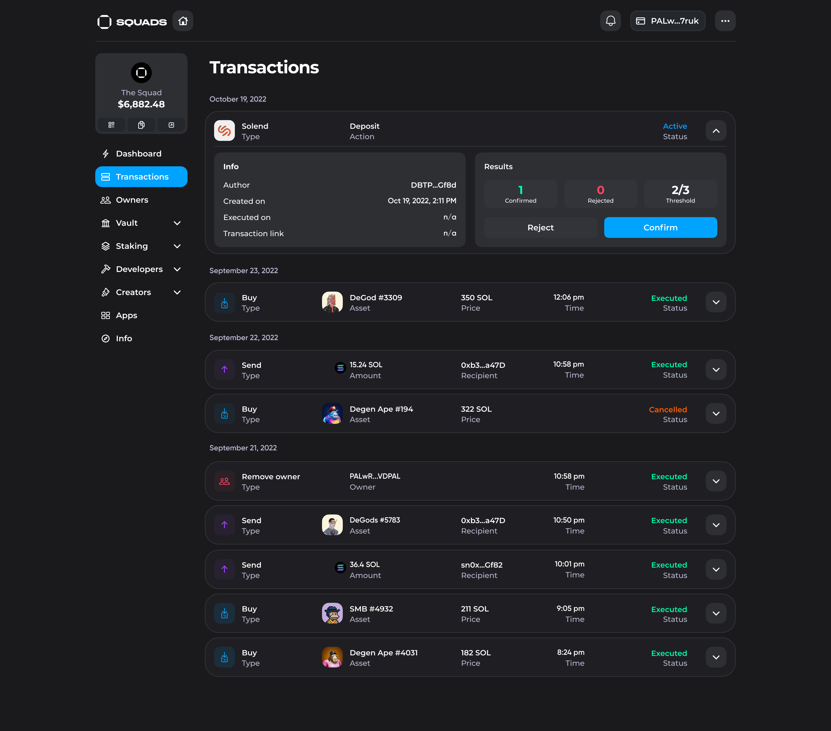 2\. Click "Select wallet" button, your Squad vault will automatically appear in the selection list.&#x20;