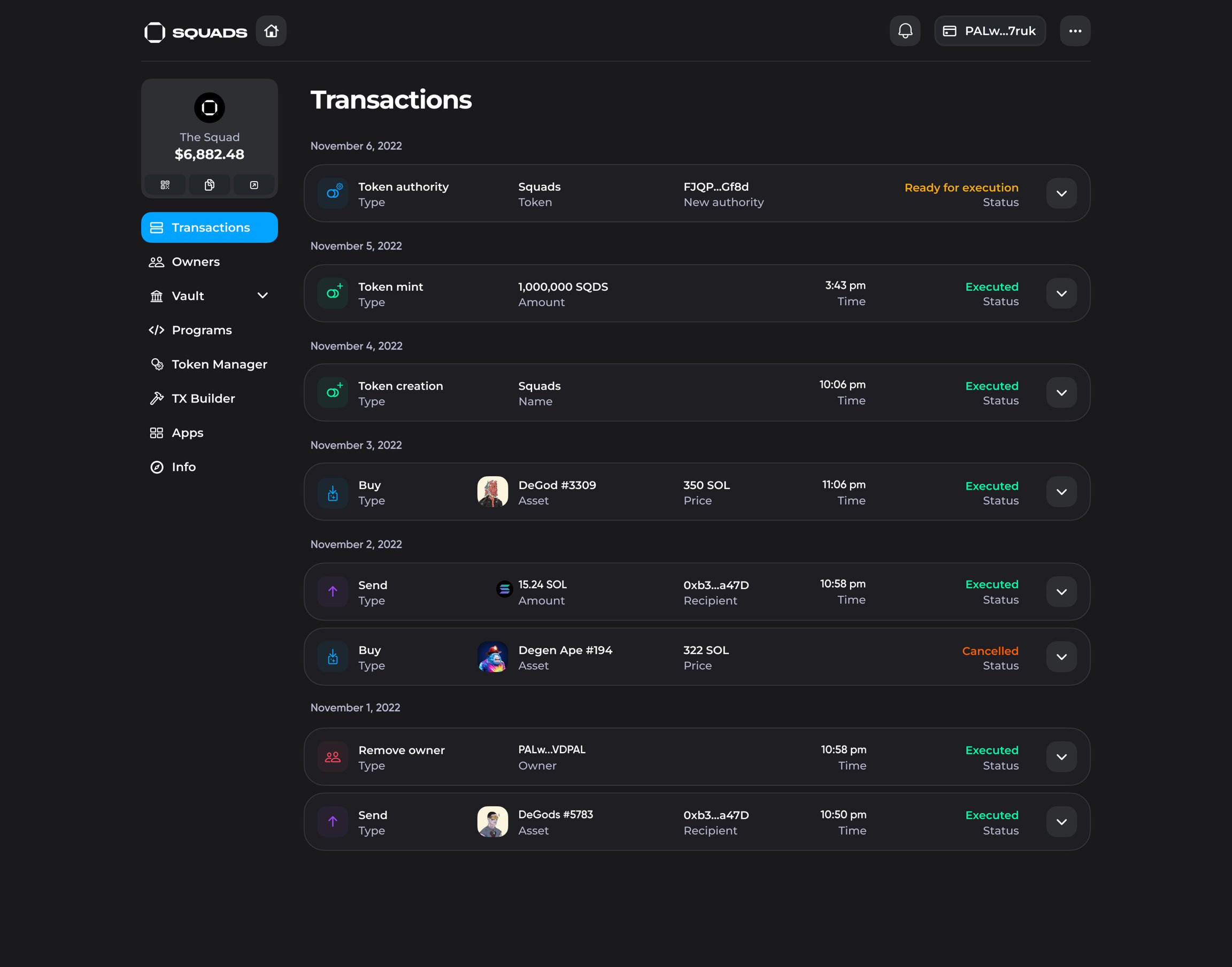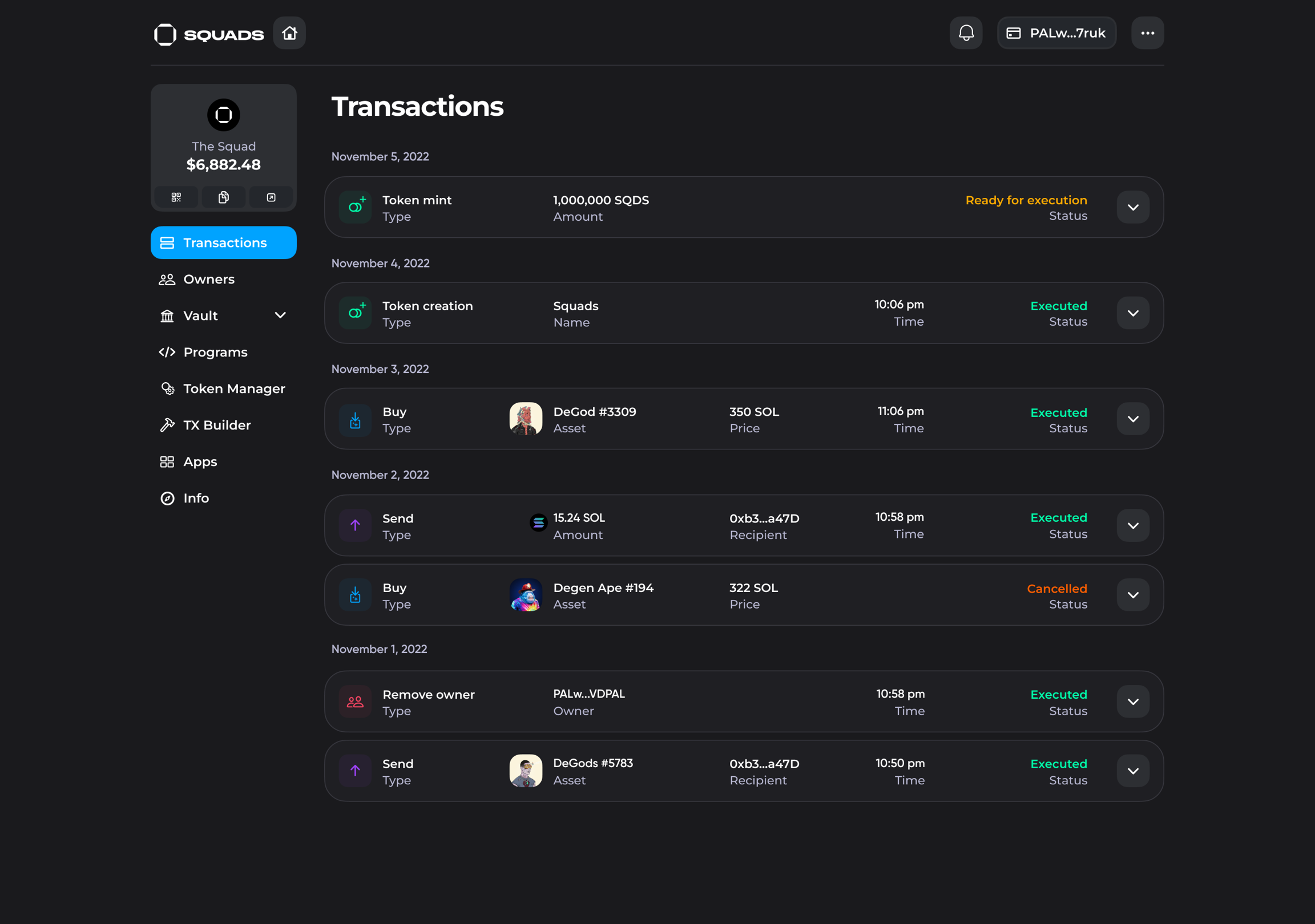 3. After the transaction has been executed, your token will appear in your Squad vault.